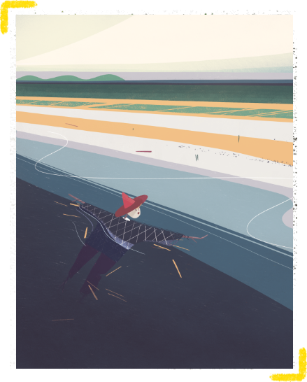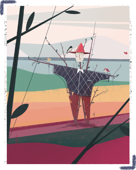 Od kiedy zdjęto Stracha z tyczki, już nic go nie trzymało. Nigdzie się jednak nie ruszał, czekając na to, co się wydarzy. Pod wieczór, zanim słońce schowało się za lasem, przyleciały ptaki, żeby wydziobać z ziemi resztki ziarna, a między nimi uwijały się polne myszy gromadzące zapasy w podziemnych spichlerzach.